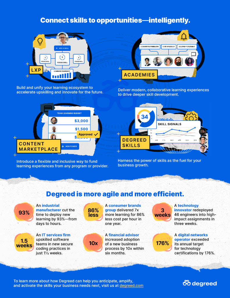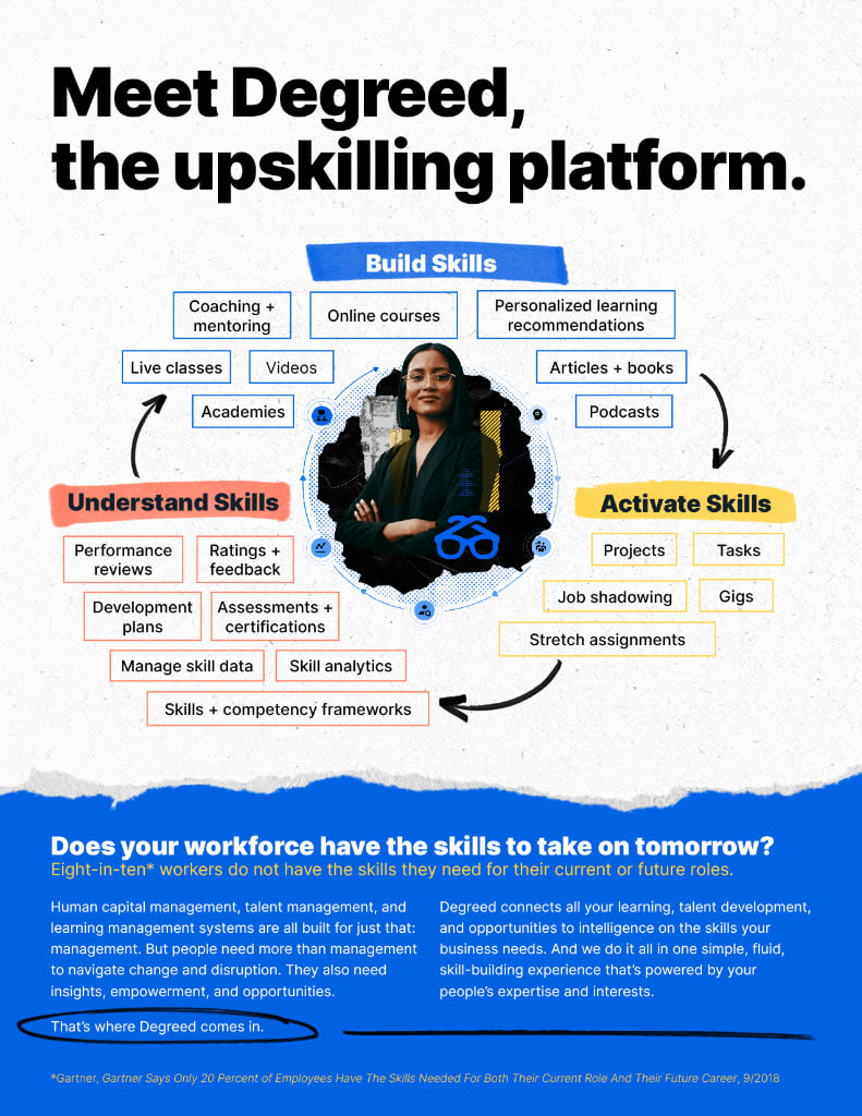 Degreed is the enterprise learning company, offering the world's leading experience platform to deliver skill-driven development. Degreed enables organizations to collect, understand, and build skills to develop a workforce that’s ready for anything.