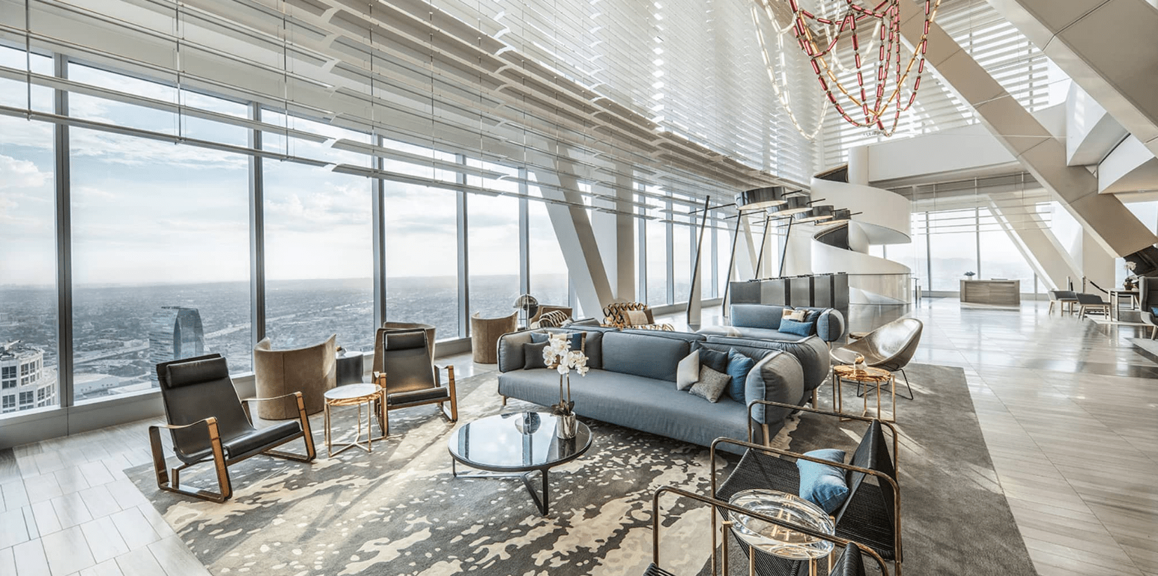 Located in the Wilshire Grand building, standing 73 stories tall in the core of Downtown’s historic, entertainment, financial, arts, and sports districts.